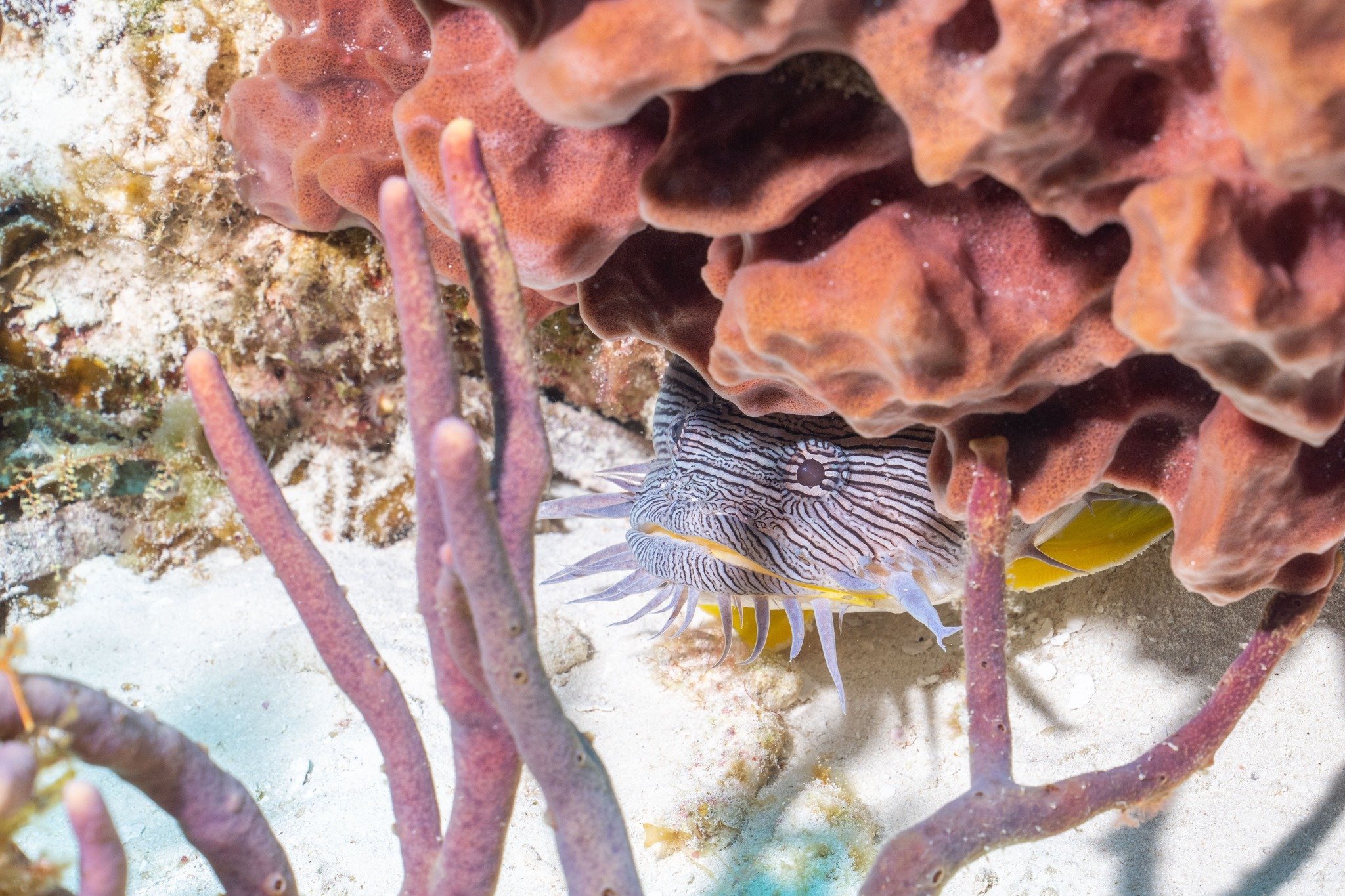 Proper buoyancy is crucial when looking for and at the Splendid Toadfish as their burrows are often low on the reef and under small ledges.
